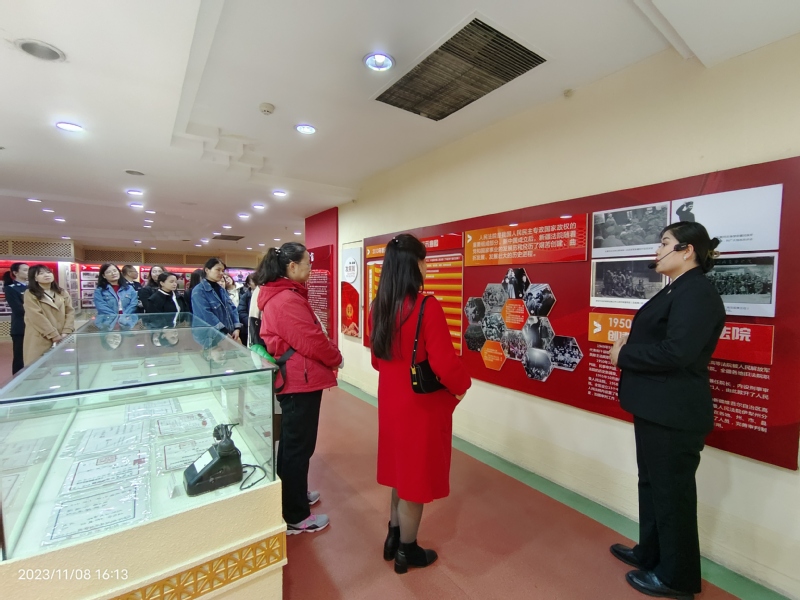 随后,党员同志们在讲解员的带领下参观了自治区高级人民法院院史馆。这里是承载了新疆法院的光荣历史和红色传承,展示人民法院形象和法院干警忠诚教育的重要基地。全体党员在讲解员的引导下,共同了解新疆法院在新中国成立以来各个历史时期的沿革、变迁、发展状况、辉煌成就以及审理的具有标志性的重大案件等内容。院史馆内每一件物品都承载着光辉岁月的印记,每一张照片背后都有着感人肺腑的故事。“公告”“判决书”“地契”“旧版结婚证”,这些反映国家法治变化的文物成了关注的热点,大家纷纷拿出手机拍照分享,体会现代中国法院的历史文化。参观院史馆让大家对新疆法院工作和法院队伍的发展历程有了更加深入的了解,同时被一代代新疆法院人砥砺前行、艰苦奋斗、振奋人心的感人事迹和忠诚勇敢、责任担当感染。
