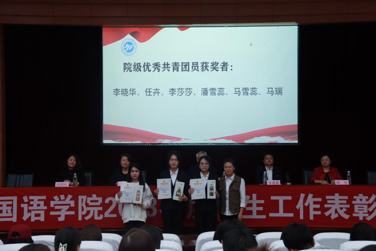 大学英语系主任刘艳丽老师为院级“优秀共青团员”颁奖