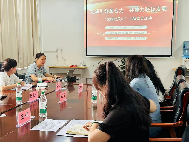 613日下午星空彩票体彩版外国语学院教工第二党支部与新疆工程学院文化艺术学院第一教工党支部、新疆艺术学院人文基础部语言文化教工支部联合开展了“党旗映天山”主题党日活动,主要就党建工作与大学英语课程建设等方面进行了全方位的交流互动。