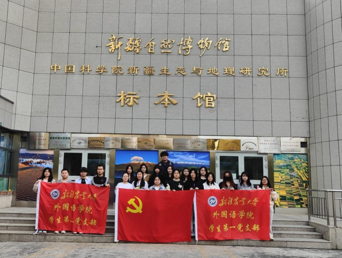 习近平总书记多次强调:“我们要深怀对自然的敬畏之心,尊重自然、顺应自然、保护自然,构建人与自然和谐共生的地球家园”。2025年4月18日上午,为积极投身于民族大团结和生态文明建设的伟大事业中,以青春之我、奋斗之我,为实现中华民族伟大复兴的中国梦贡献力量,外国语学院学生第一党支部、外国语学院学生第二党支部与食品科学与药学学院第一党支部共赴新疆自然博物馆,联合开展党日活动参观新疆自然博物馆主题党日活动,在自然与人文交织的画卷中感悟初心使命,汲取奋进力量。