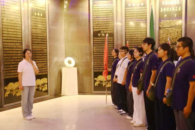 同学们奔赴北山烈士陵园。苍松翠柏间,祭奠仪式庄严肃穆。陈舒帆同学以青春之姿擎起团旗,成为红色传承的生动注脚。全体成员向革命先烈默哀、敬献花篮。仪式中,同学们面向团旗,庄严宣誓,誓言声声,是同学们对传承革命精神的庄重承诺;团旗飘扬,是青年接过先辈使命的宣告,让“为有牺牲多壮志”的精神,在新一代心中落地生根。