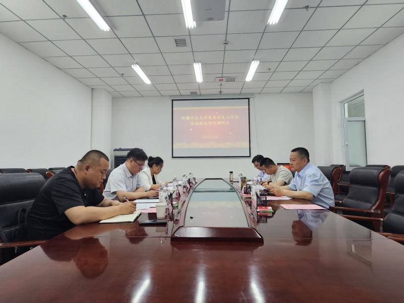 新生学院党委副书记阿肯努尔·达那别克参加调研,学工部、新生学院相关科室(中心)负责同志参加座谈交流。