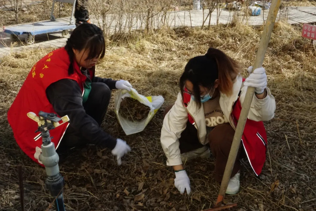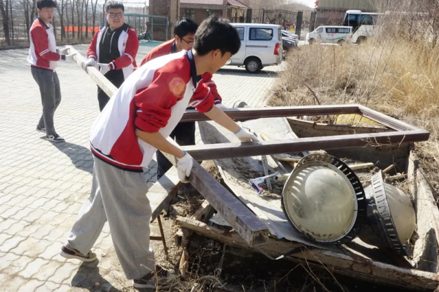 水利水电工程2302班团支部志愿者积极美化校园环境,利用课余时间打扫校园卫生。