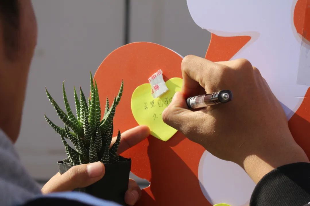 每一张贴纸都承载着真挚的祝福,这棵雷锋树,以爱心为肥料、以善语为雨露,在风中交织,奏起无声的乐章。温暖生根,希望发芽。新生学院公管2402班陈郑欣冉同学说:“在宿舍看着这些绿植生根发芽,仿佛看到了儿童村的儿童成长一般,让我的心里暖暖的”。