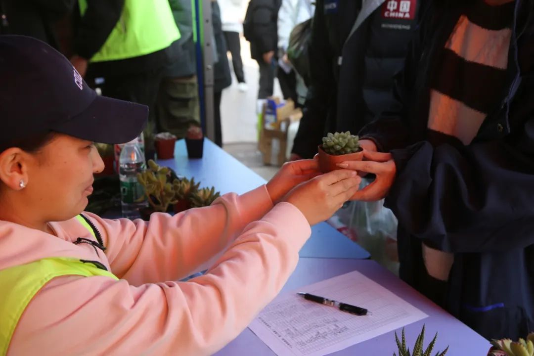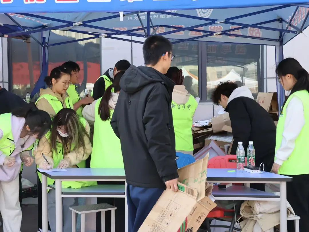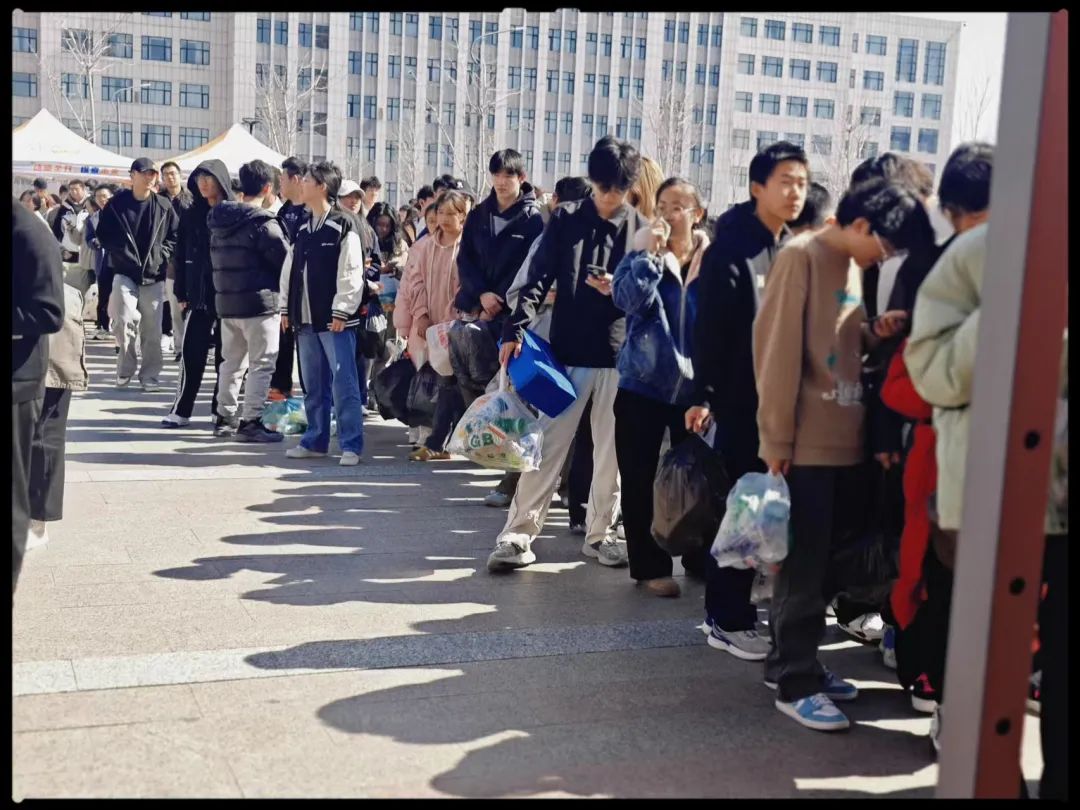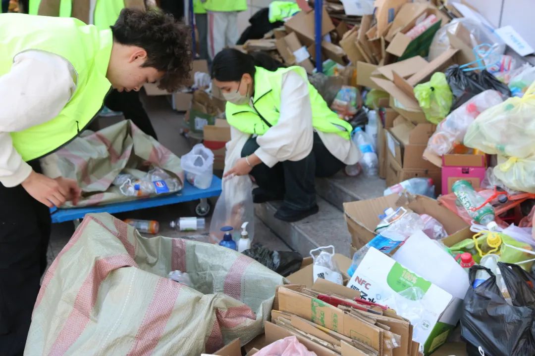 绿植发放完毕,但并不减轻同学们的热情,这一刻,献暖使大家产生了共鸣,爱心长队再次排起,无偿捐赠热忱善意,一万余个瓶子堆积在一起,大家的爱心凝聚在一起。