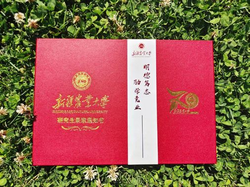 校庆纪念版研究生录取通知书色彩上以红色作为主色调,象征传承农大红色基因,激扬奋斗青春底色,金色校徽、校名、“研究生录取通知书”字样与70周年校庆徽标交相辉映,中间是烫红金色“明德笃志 励学竞业”的校训腰封。