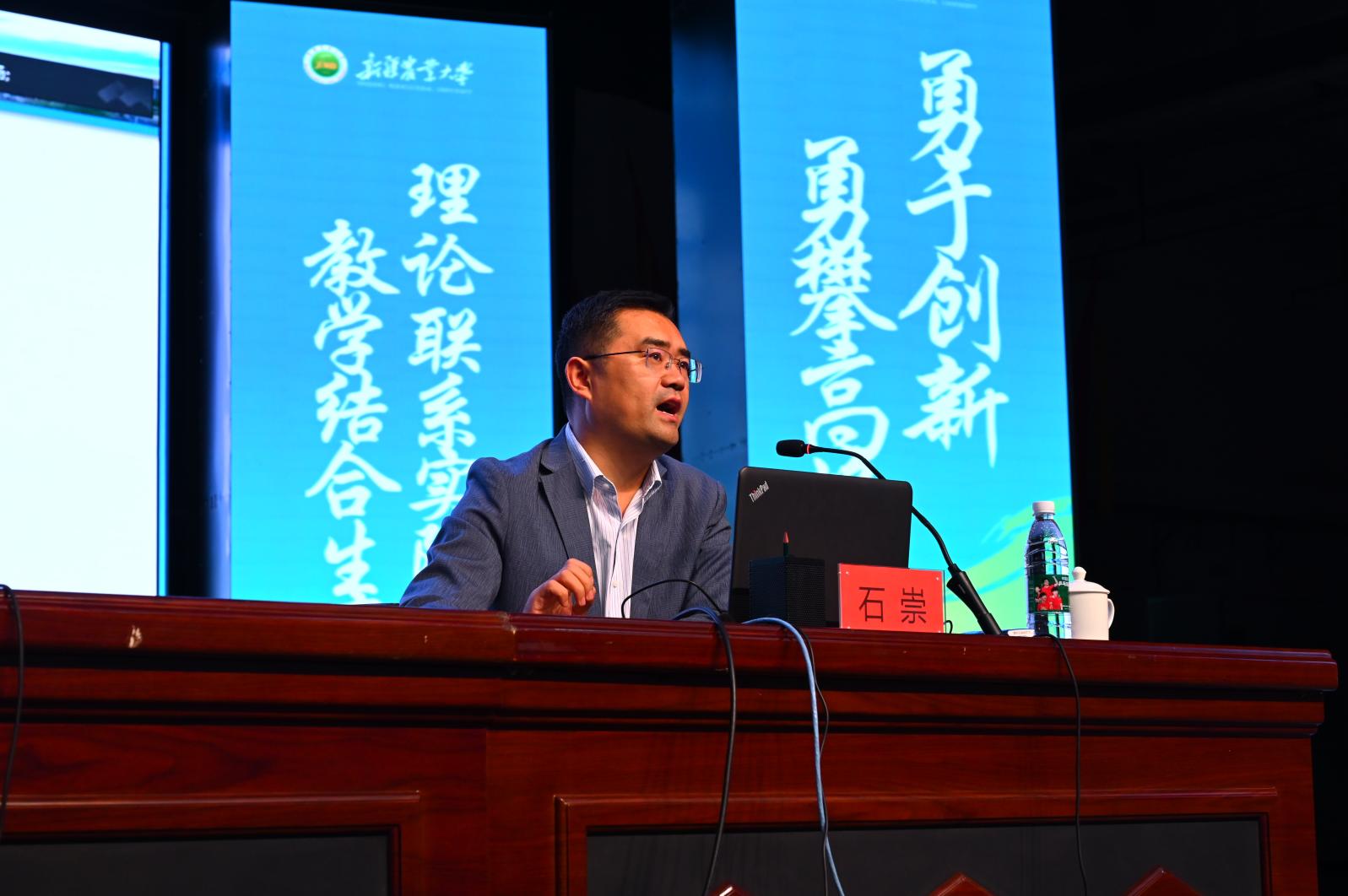 水利与土木工程学院援疆副院长石崇教授以“轩辕石课题组”为切入点,为全体新生以“漫谈研究生的科研素养提升”为主题展开讲解。他说作为一名研究生,应该具备重视研究方法培养、培养科技论文撰写能力、注重研究态度培养以上三个科学素养。只有不断尝试打破常规才会有创新思维。他认为做好规划努力让自己成为一名优秀的研究生,既得益于个人,更得益于社会。分享的最后,石崇教授全体2024级新生送上“为天地立心,为生民立命,为往圣继绝学,为万世开太平”的寄语。