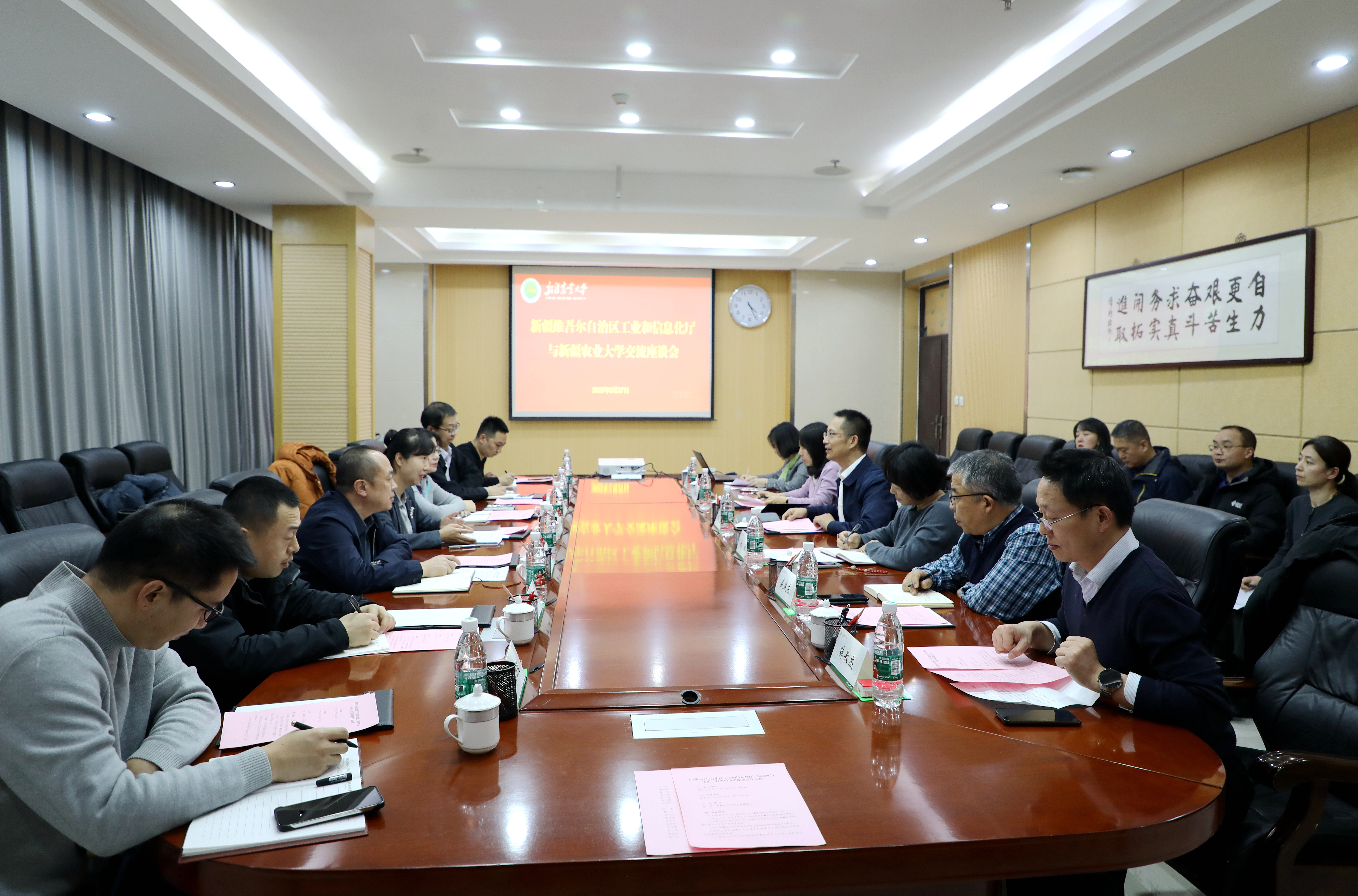 会上,陈勇对王霞一行的到来表示欢迎,并简要介绍了学校的历史沿革和发展概况。他表示,学校近年来在农业人才培养、科技创新、技术推广及乡村振兴等方面取得了显著成效,将以此为契机加强与自治区工业和信息化厅的合作与交流,共同推动卫星应用相关技术的创新与应用,为自治区农业技术的高质量发展做出更大的贡献。