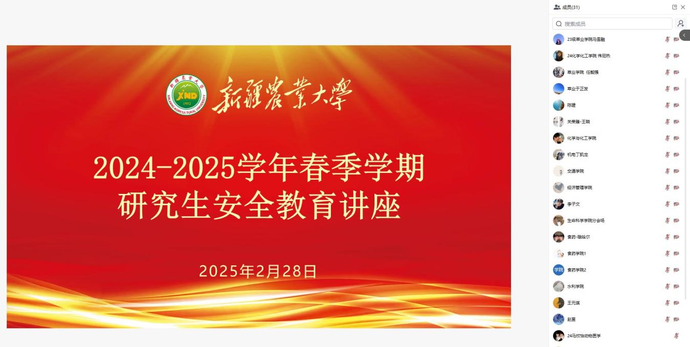 此次讲座采用线上、线下相结合的方式,覆盖全体研究生,内容详实、形式生动,有效提升了研究生的风险防范意识和应急处置能力,为构建平安校园、保障科研工作有序开展奠定了坚实基础。