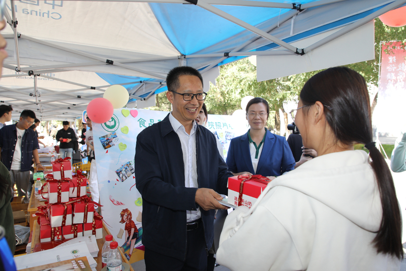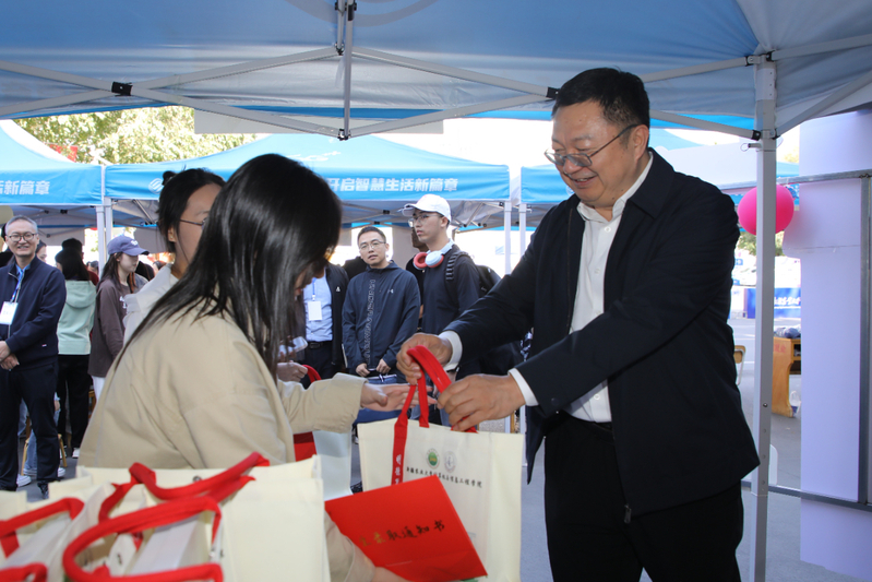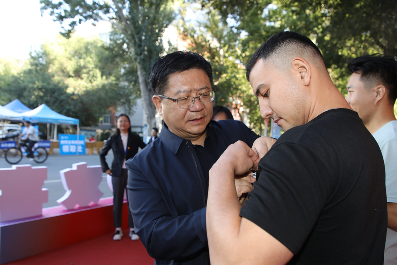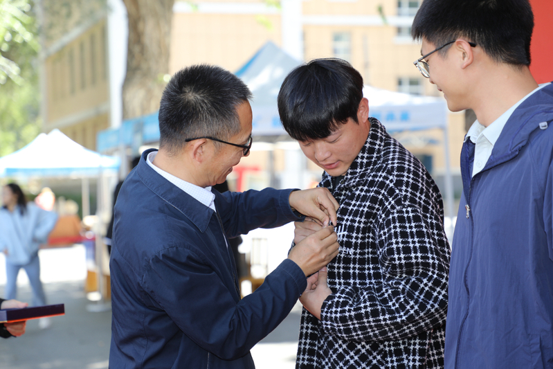 校党委副书记陈勇亲自为推免新生别上了专属我们学校的徽章,并亲手送上了慰问礼物进行亲切地问候。