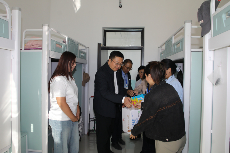 除此之外,在新生报到完入住宿舍之后,校领导亲临宿舍走访慰问。领导热切的关怀“你来自哪”“来新疆觉得习惯吗”“吃的习惯吗”“有什么需要尽管提”等关心的话语让新同学倍感温暖与感动!