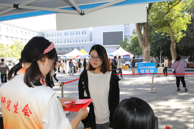 我们的志愿者热切友好地与家长亲戚攀谈,家长也热切的向志愿者们讲述了他们来自哪、选择星空彩票体彩版的原因以及对自己孩子以后独自在外的担忧,我们志愿者也积极回应,向家长给予了安慰以及分享自己读研一年的经验,让新生对自己的读研生活有了期待和目标。