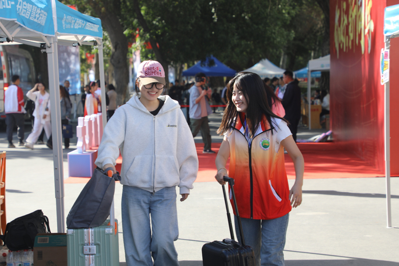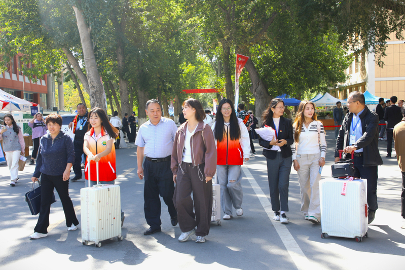 你好,新同学!你一定能看到校园里,有这样一群忙碌的身影格外醒目,他们身着统一服装面带灿烂笑容,或指引方向,或帮忙搬运行李,或解答疑问介绍着校园生活,他们是学长学姐志愿者用热情消融陌生,用服务传递温暖,成为你们初入校园最可靠的“引路人”,也是你在校园里认识的第一批朋友,他们的无私奉献,确保了迎新工作的顺利进行。除此之外,校领导深知家长长途跋涉来到校园的不易,准备了温馨的家长等候区,桌子上的零食、矿泉水以及新疆特色的馕都是我们对远道而来家长欢迎的证明!