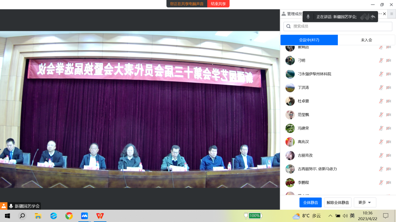 为了进一步学习贯彻习近平新时代中国特色社会主义思想,提高新疆园艺学会服务广大科技工作者、服务区域经济发展、开展学术交流和科学文化知识普及推广的能力,积极发挥广大会员参与学会工作的积极性,新疆维吾尔自治区园艺学会于2023年4月22日召开了新疆园艺学会第十三届会员代表大会暨换届选举会议,新疆园艺学会全体理事候选人及会员代表590余人以线上线下相结合的形式参加了本次会议。
