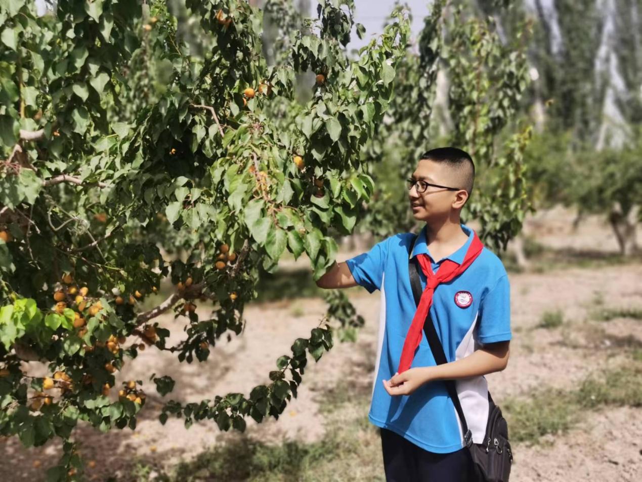 “这是我这段时间以来最幸福的日子,很高兴学校与新疆新疆园艺学会组织的这一场有趣的研学活动,我在那里感受到深深的震撼。一片片的果林,硕果累累的果实,在阳光的照耀下散发出光芒,同时我也品尝了那里美味的果实,不仅颜色好看,而且味道很好,我很喜欢,同时我也明白为什么轮台县会被称为白杏之乡的原因,我为我的家乡感到骄傲。“七(2)班艾合拉木·吐尔逊同学说道。