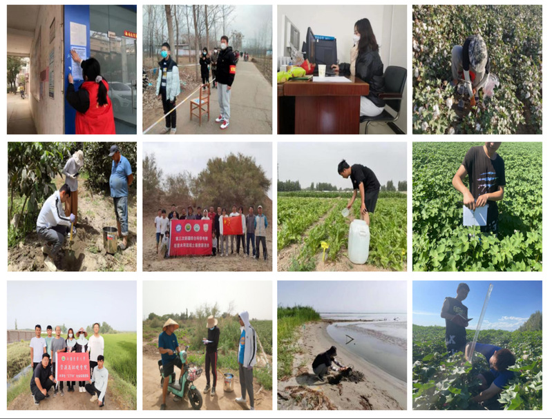 疫情防控期间,班级10余名同学积极响应号召,投身到家乡抗疫一线,以青春之名,践行当代青年大学生的责任担当,在志愿服务岗位上绽放青春绚丽风采。2022年暑期,班级以“青春献礼二十大 强国有我新征程”为主题开展了暑期社会实践活动,共27名同学跟随新疆综合科学考察社会实践团前往南北疆各地进行农业生产助研实践,真正将理论与实践相结合落到了实处,让专业知识在发现问题、分析问题、解决问题的过程中得以应用,践行了把论文写在大地上、用脚步丈量祖国的号召!