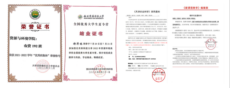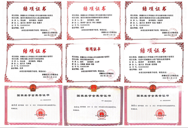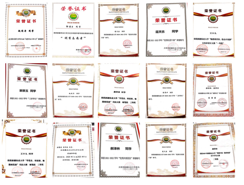 唐春花同学荣获全国大学生英语竞赛C类一等奖;张一同学荣获自治区“红领巾小课堂”证书、第八届中国国际“互联网+”大学生创新创业大赛院级优秀奖;赵同舟同学荣获校级优秀共青团干部、昆虫知识竞赛一等奖;寇天乐同学荣获校级优秀共青团干部、校园定向赛二等奖;郭景玉、陈香伊同学荣获校级优秀学生干部以及校级三好学生;王小九同学荣获校级“取之一厘,报之以醴”绘画大赛一等奖、摄影大赛二等奖;郝泽林同学荣获校级优秀共青团员、校级书法大赛二等奖等。