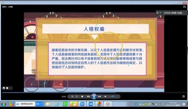 为了深入学习和深刻了解《民法典》内容,充分认识颁布民法典的重大意义,确保大学生学习民法典获得“内化于心”的良好效果,应与时俱进拓展学习载体、丰富学习形式。2020年12月13日下午16时中国语言学院团委组织学院16个团支部以线上线下的形式开展了主题为《民法典》与你我同行”的团课活动。