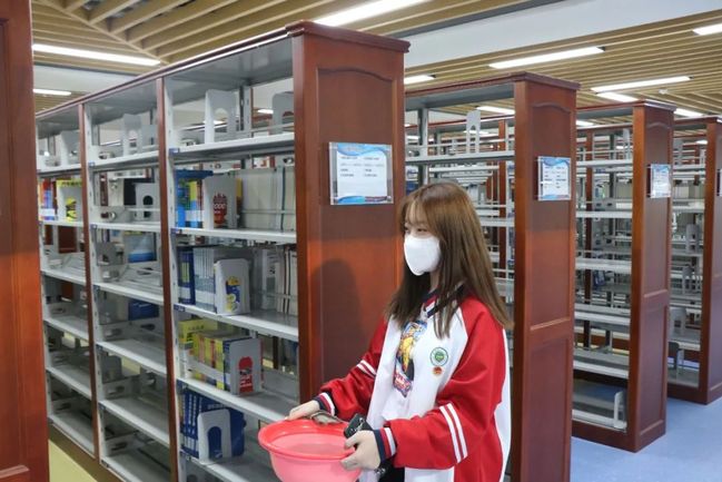 活动中,同学们对学校图书馆进行卫生大扫除。首先大家对图书馆中的书籍进行了分类整理,其次对书架、桌子、走廊、扶手等区域进行了集中打扫;同学们耐心细致地打扫着图书馆的每一个角落。大家齐心协力,最后顺利且圆满地完成了本次志愿服务活动。
