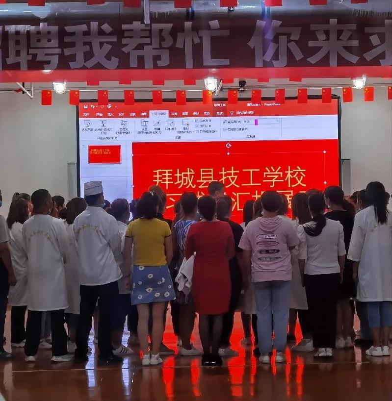后期,结合新疆惠民政策,专业技能法律法规 ,在日常国语教学中每周开展两次党课,其中包括法律法规教学,参观四史展馆,观看红色电影撰写心得等。通过多样化,全方面的教学模式融入到课堂当中提高学生学习效率。我们在课下还与当地少数民族同学聊天,了解当地文化,提升自身专业知识同时与他们建立了深厚的友谊。在教学后期我们同学校组织开展了拜城县技工学校汇报演出,展示教学成果与学生风貌。