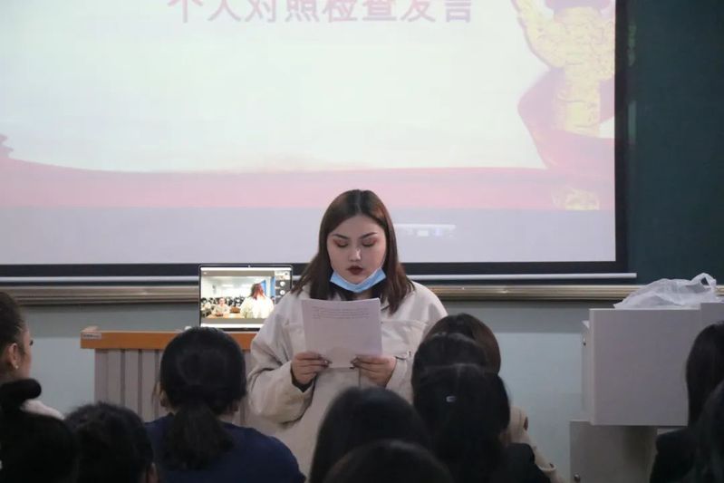 紧接着,八号楼党支部书记艾力亚尔老师和十三号楼党支部书记戴文娜老师带头开展自我批评。随后男生党支部副书记叶英和女生党支部副书记谢伊代·图尔贡进行自我剖析,他们不仅指出了自己在学习与工作中的优势,也将自己的不足和应该改进的地方进行了深刻的剖析,并表示会努力成为一名优秀的学生党员,发言完毕赢得阵阵掌声。随后男生支部纪检委员毕聪,女生支部宣传委员张亚楠发言,他们总结出自己的政治理论学习深度仍不够,缺乏钻研精神等问题并针对这些问题提出了解决办法。随后余下的党员干部依次作个人对照检查,深刻地剖析了自身的不足和存在的问题,并提出下一步的改进措施。随后全体正式党员分为小组进行民主评议,对组内成员进行评价打分。