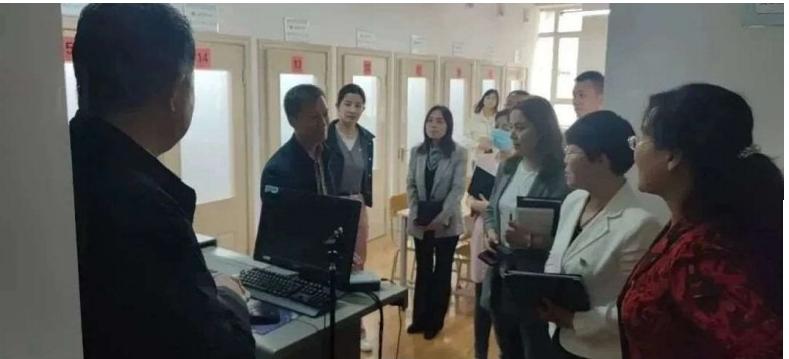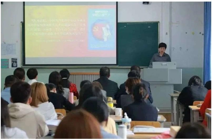 学习调研结束后,五支部全体同志参观了中语学院普通话测试工作站,学院李豫新副站长就测试工作做了细致讲解。参观结束后,五支部一行和中语学院教工党支部、学生支部共同听取了马克思主义学院裴红娟副教授精心准备的专题党课《深刻领会中国式现代化推进中华民族伟大复兴》。