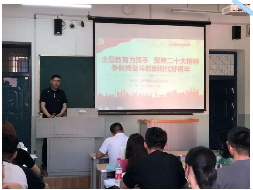 为深入学习贯彻习近平新时代中国特色社会主义思想及党的二十大精神,落实对党员的思想政治教育,扎实推进学校思想政治工作高质量发展,6月7日,中国语言文学与艺术学院8号、13号学生公寓党支部通过线上线下相结合的方式开展以主题教育为抓手、聚焦二十大精神——争做肯奋斗的新时代好青年主题党日活动。我院党委副书记阿布都哈力克·吉热拉讲授党课。