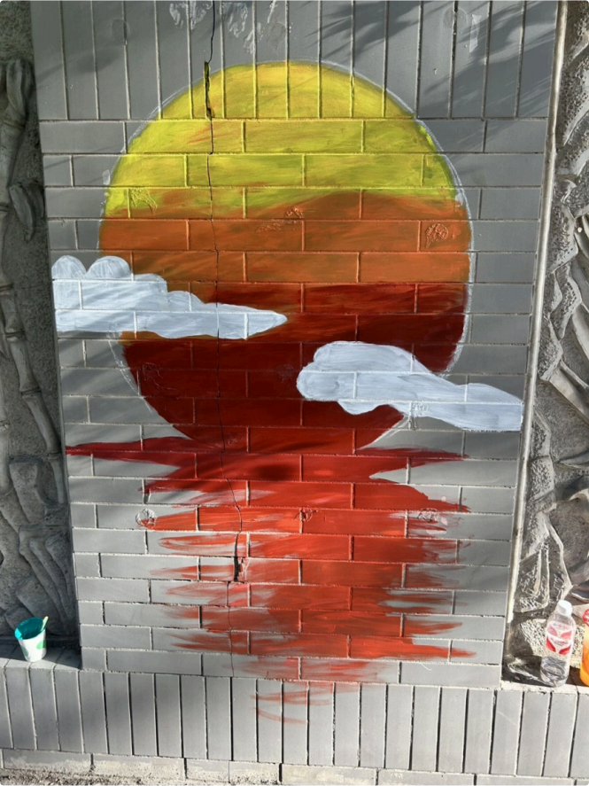 应乌鲁⽊⻬市扬⼦江路宝⼭路东社区邀请,汉语⾔ 2301班的同学们在乌鲁⽊⻬夏末的晴空下,⽤蘸满颜料的画笔正悄然改写城市街角的记忆。将脱落斑驳的墙化作流动的画卷,他们⽤⻘春特有的⾊彩为⽼街区披上霓裳。