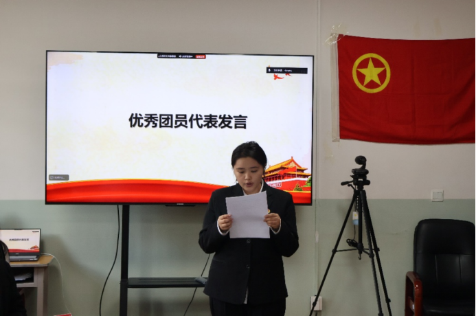 阿依努尔·买买提老师以“凝聚青春力量,赓续红色血脉”为主题,寄语新团员:“共青团员不仅是一种身份,更是一面旗帜,要让团徽在奉献中闪光,让青春在担当中出彩。”句句嘱托,为青年成长锚定方向,点燃了在场每一颗向新而行的决心。