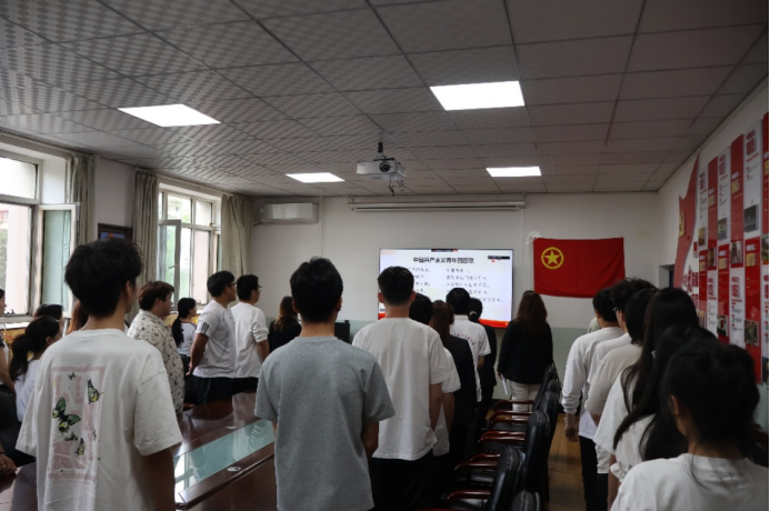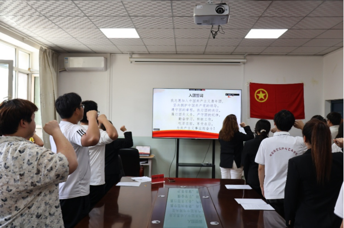 “我志愿加入中国共产主义青年团……”。入团宣誓掷地有声,庄严的宣誓声响彻全场。