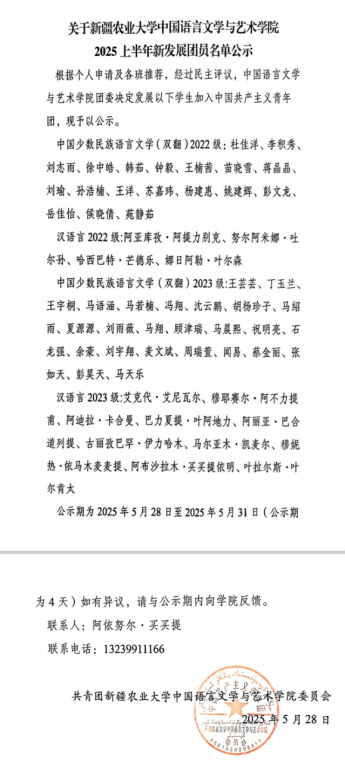 随后,由团委副书记阿依达娜宣读新团员名单。