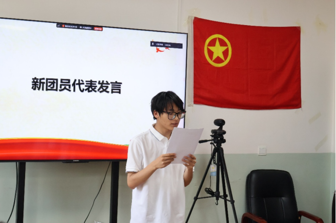 新团员代表余豪同学眼中闪烁着光说:“戴上团徽,就是接过了时代的接力棒。”让我们看到了共青团源源不断的新生力量。
