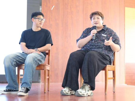 在同辈经验分享环节,大二国家奖学金获得者赵雪梅同学现场传授外语学习方法和二课学时获取技巧。新生代表苏比努尔虽是大一学生,却自信分享其"二课学时从0到250"的适应心得,赢得现场热烈掌声。