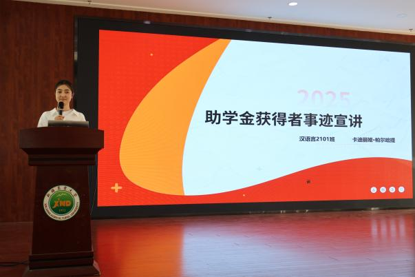 在经验分享环节,4位大四学生结合自身经历进行精彩演讲。自治区励志奖学金获得者、推免保研成功的朱帕尔同学强调大学学习的重要性,并分享其在艺术团的实践经历,建议学弟学妹通过参与活动提升综合素质,同时寻找学习伙伴共同进步。阿克依旦同学讲述自己大三逆袭获得国家奖学金的励志故事,通过"锁住手机""强制听课"等方法重塑学习状态,生动展现与意志力斗争的过程。许嘉琪同学则分享其保持专业课程90分以上的学习秘诀,以及在支教活动中收获的成长经历。卡迪丽娅同学以助学金获得者的身份,鼓励大家心怀感恩、奋发学习,并分享其保研至西北民族大学的心路历程。