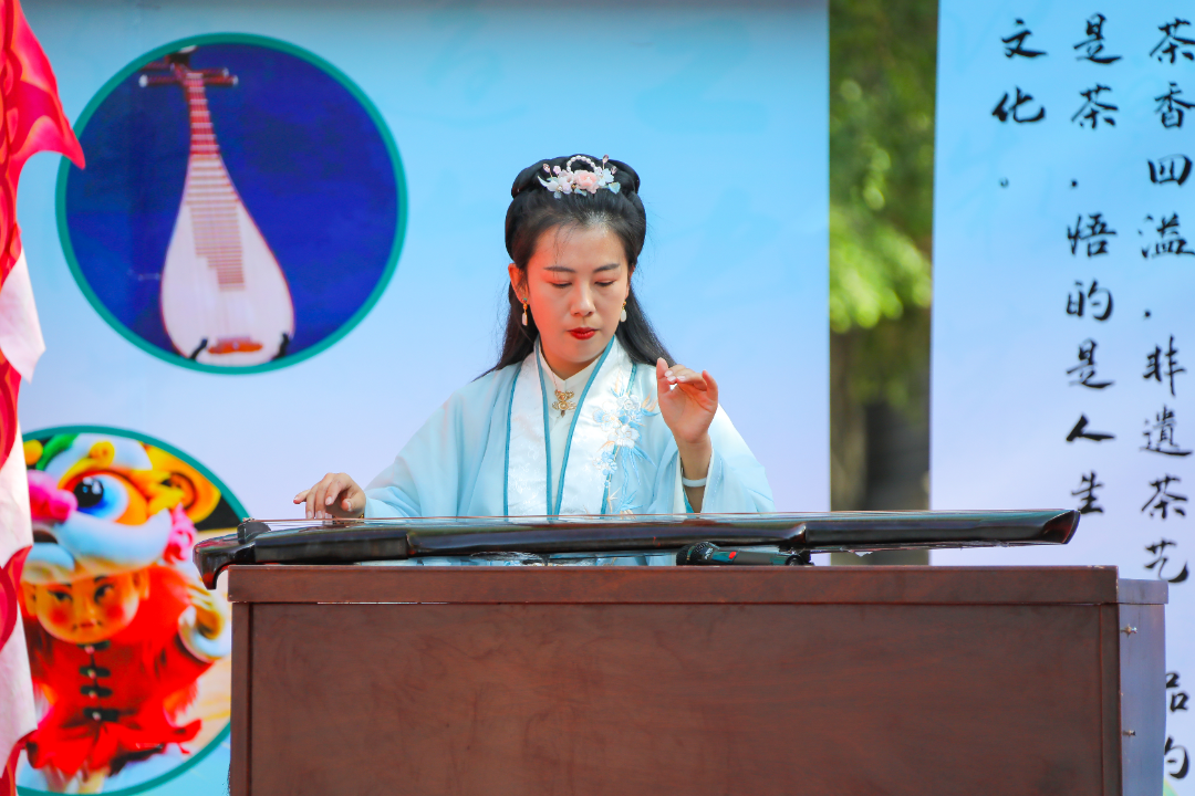 茶艺区,空气中弥漫着袅袅茶香,两位来自中语学院的茶艺大师同学,身着传统服饰旗袍,现场演绎了完整的茶艺流程:温杯烫盏、投茶注水、凤凰三点头……行云流水的动作配合古琴背景音乐,将传统茶道的“和、静、清、雅”展现得淋漓尽致。