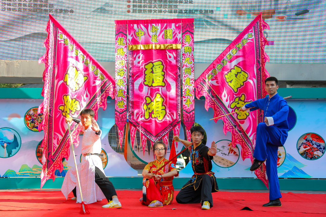 活动在疆鸿龙狮团的南狮爬杆表演中拉开序幕,精彩的表演瞬间点燃了现场的气氛。