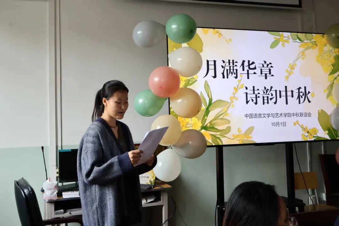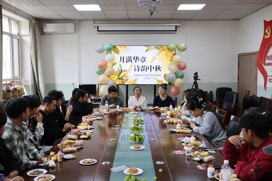 10月1日上午,八号楼二楼会议室里暖意融融。中国语言文学与艺术学院为留校的同学们精心准备了一场别开生面的"月满华章,诗韵中秋"主题座谈会。大家欢聚一堂,在诗与歌、猜谜与欢笑中,度过了一个风雅又难忘的中秋佳节。